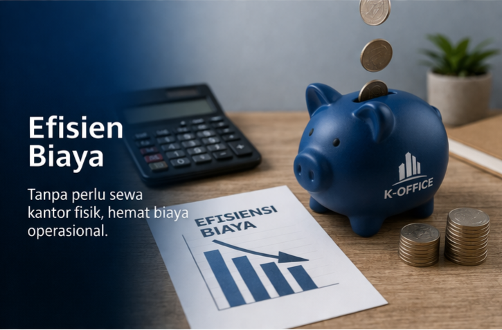 Virtual Office jauh lebih hemat biaya karena tidak perlu sewa kantor, listrik, dan operasional lainnya. Selain itu, Anda tetap mendapatkan alamat bisnis strategis dan citra profesional untuk perusahaan.